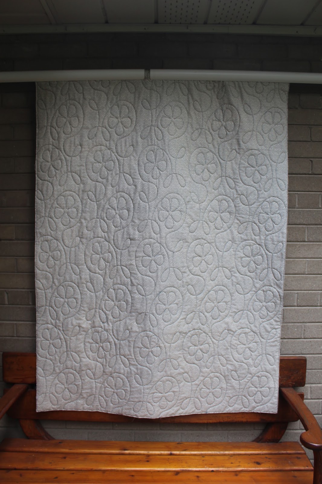 The thread is from Superior and it is OMNI-V French Pastry both the top and the backing. I had tension issues when I tried a Gutermann thread in the bobbin so I opted to go with the white.